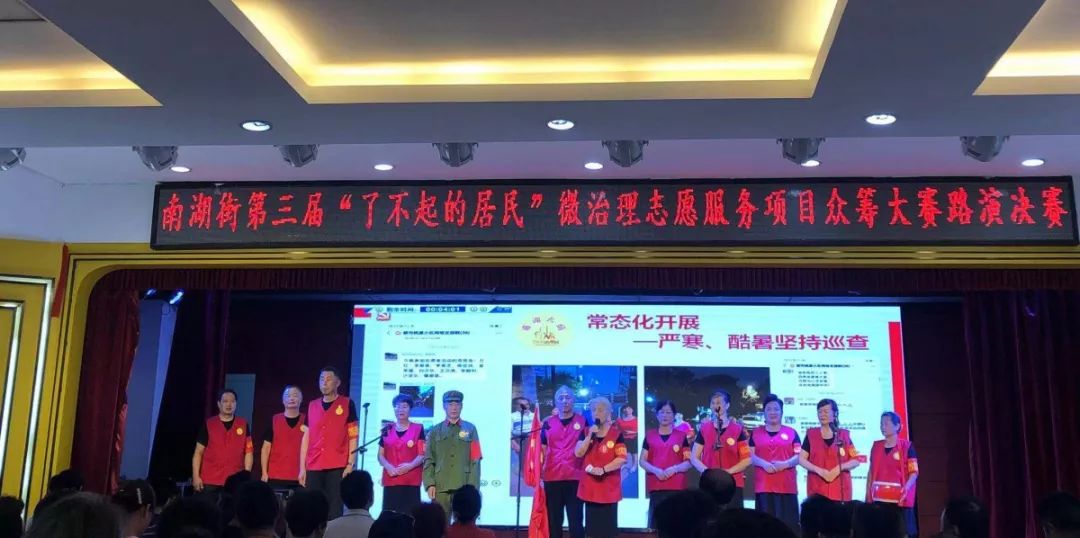 “了不起的居民”微治理志愿服務(wù)項(xiàng)目是由南湖街主辦,經(jīng)社區(qū)黨員代表、居民骨干、社團(tuán)組織領(lǐng)袖等向由轄區(qū)居民征集生活中熱點(diǎn)、痛點(diǎn)和難點(diǎn)問題,并號(hào)召、呼吁社會(huì)各方組織,共同整合資源眾籌人、財(cái)、物等來解決這些痛難點(diǎn)問題而搭建的社區(qū)治理平臺(tái)。
