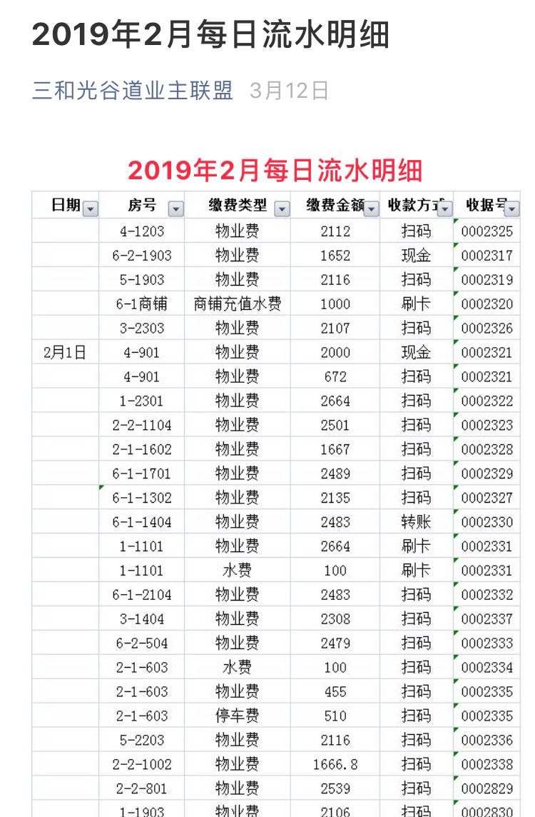 三和光谷道是江夏區(qū)一個(gè)住宅物業(yè)酬金制的小區(qū),自2017年6月業(yè)委會(huì)成立,八月召開(kāi)業(yè)主大會(huì)解聘了前物業(yè),新物業(yè)于2017年10月1日入場(chǎng)。新物業(yè)采取的酬金制,小區(qū)成立了公共賬戶(hù),一切收入歸全體業(yè)主。物業(yè)公司的所有支出按照約定金額定期支出(其中包含物業(yè)的支出、利潤(rùn)、約定獎(jiǎng)金等)。收的每一分錢(qián),支的每一筆款每月都在業(yè)主群發(fā)布。