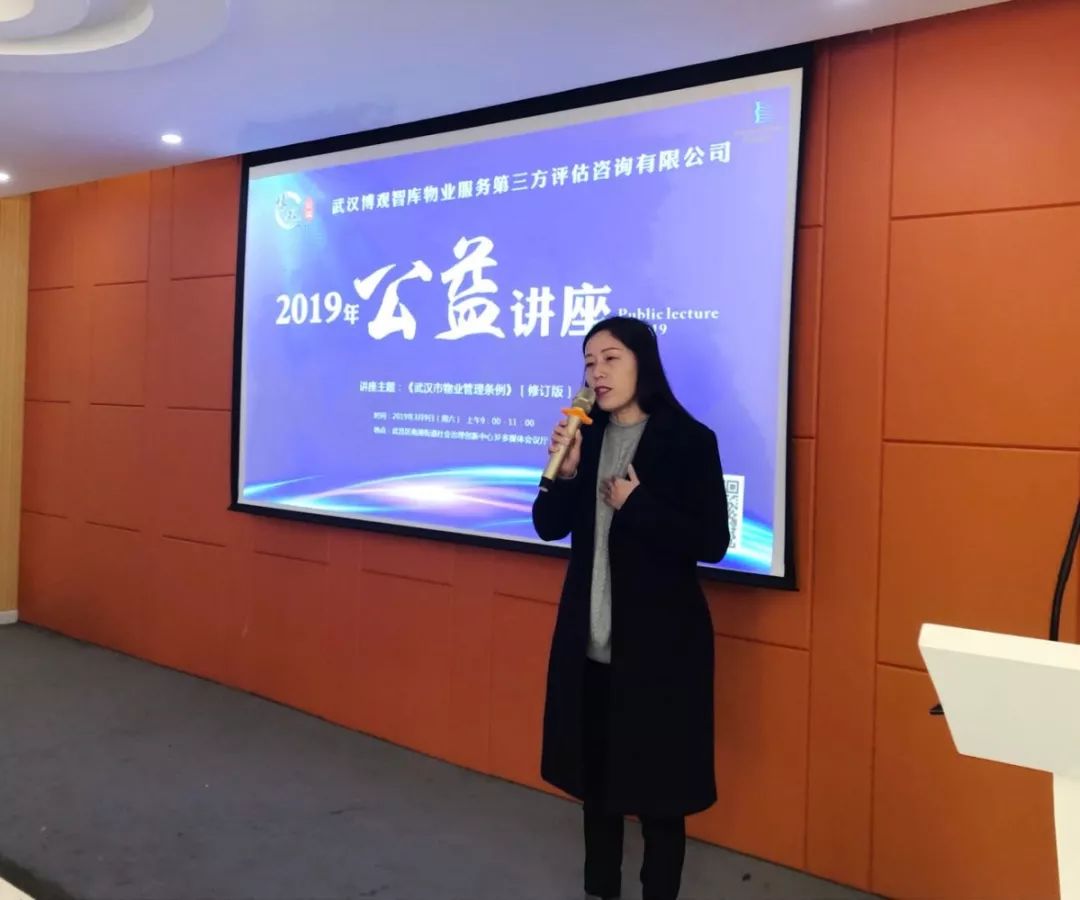 3月9日上午9點,我司主辦的“2019年博觀公益講座”第一期,解讀《武漢市物業(yè)管理條例》[修訂版],在南湖街社會治理創(chuàng)新中心報告廳成功舉辦。參加本次講座的來自武漢各個區(qū)的小區(qū)代表,約50余個業(yè)主委員會委員參加。本次公益講座邀請了我司專家、武漢市物業(yè)管理協(xié)會秘書長、《武漢市物業(yè)管理條例》修訂參與者顧玉蘭秘書長。